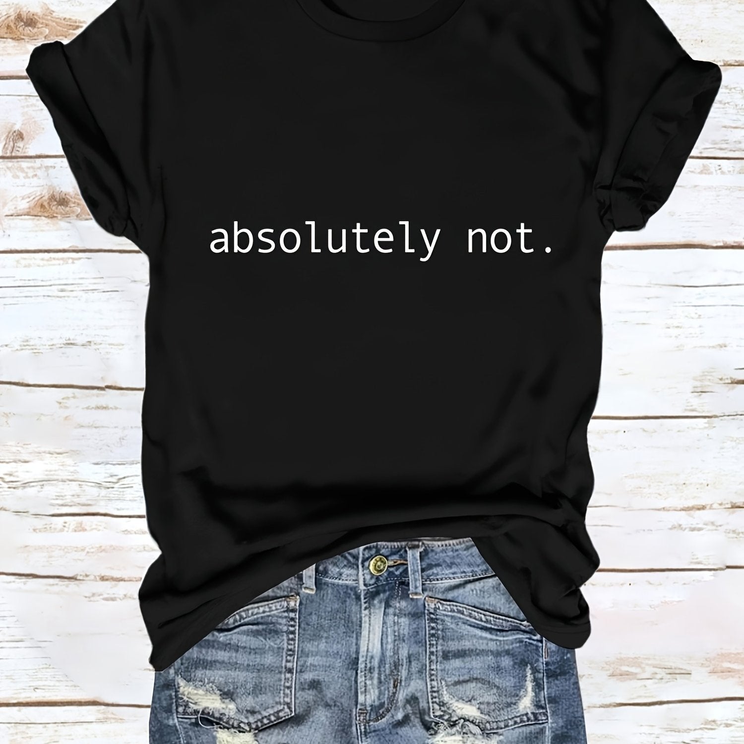 Introducing the 1pc Women'S Casual V-Neck T-Shirt with "Absolutely Not" Slogan in classic black—an essential addition to your wardrobe that effortlessly combines style and attitude. This t-shirt features a playful slogan that speaks volumes while ensuring you remain comfortable and chic.