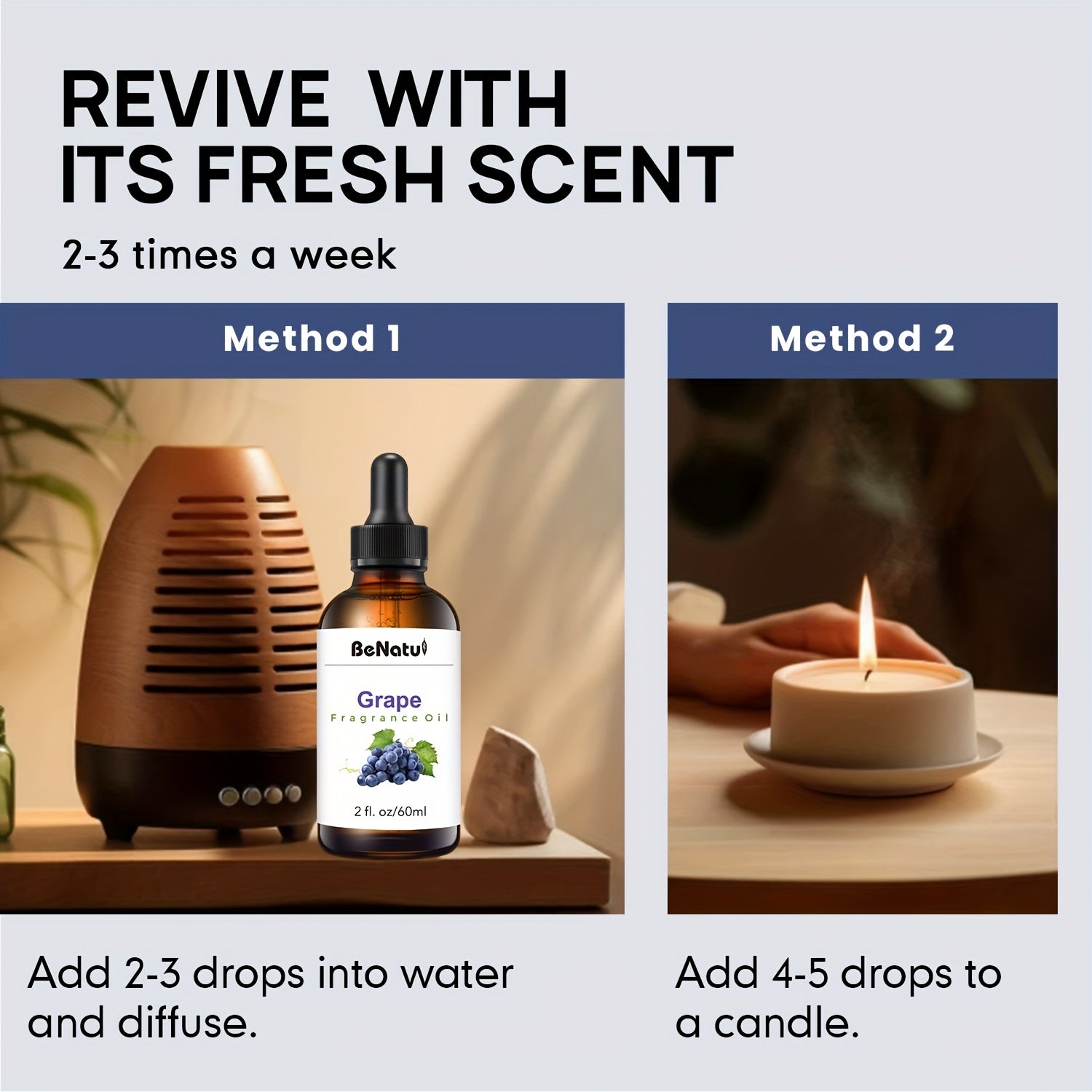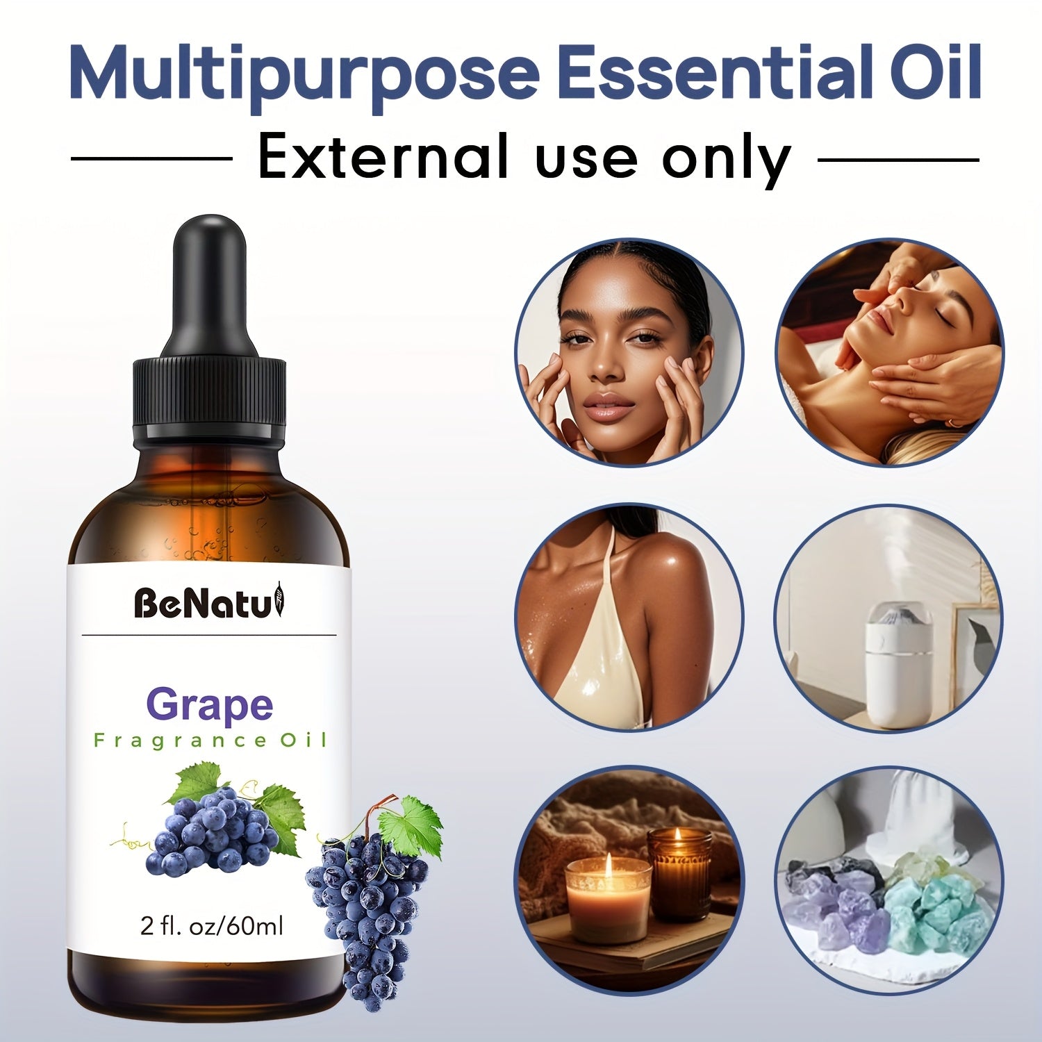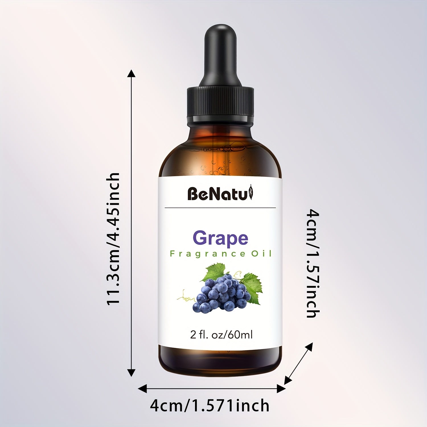 2.03 Ounce Grape Fragrance Essential Oil Premium Fruit Scent for Diffusers Humidifiers Candle Making and Sachet Bags Long Lasting Aromatherapy Oil with Dark Amber Glass Bottle and Dropper Cap