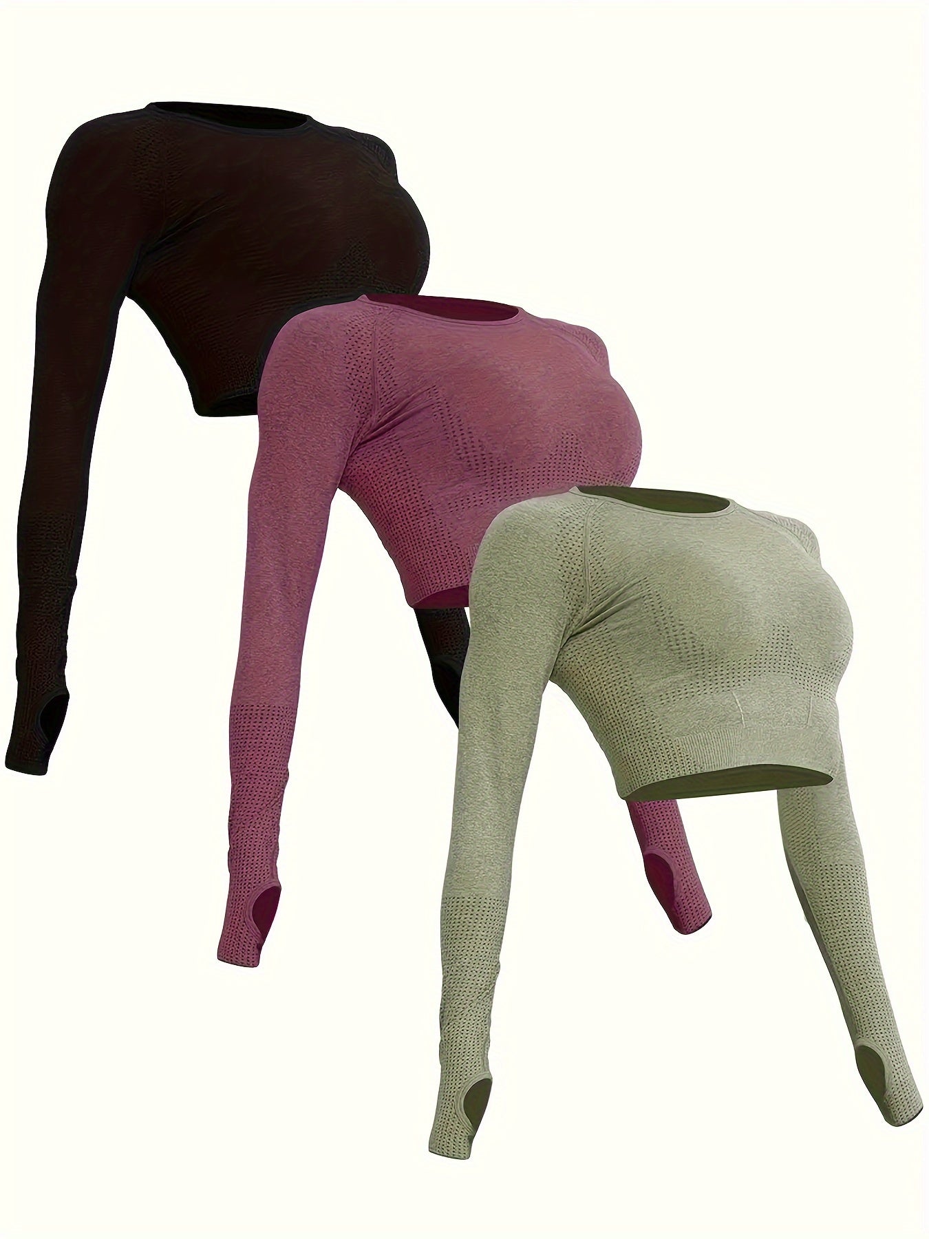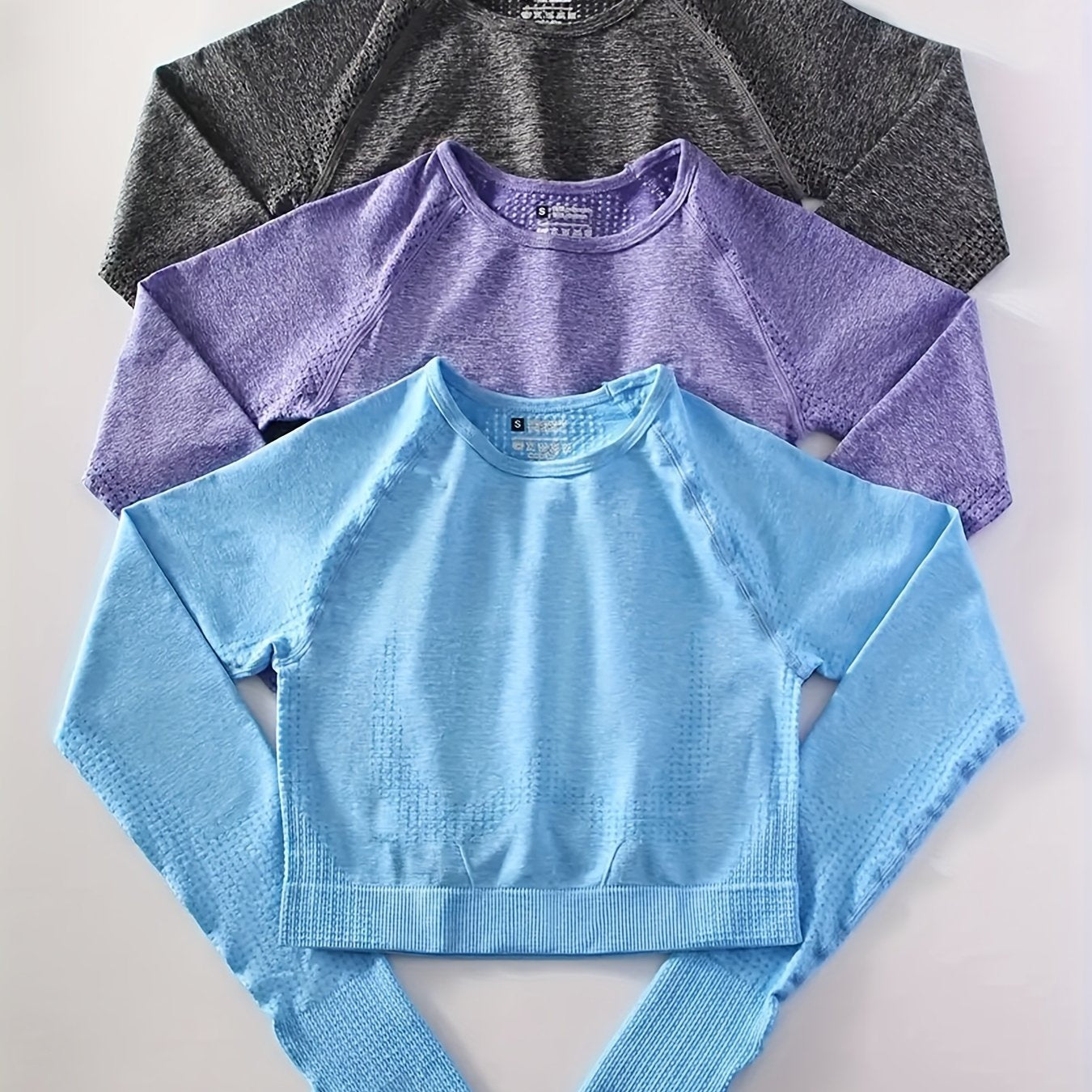 3pcs Women's Polyamide Long Sleeve Yoga T-Shirts