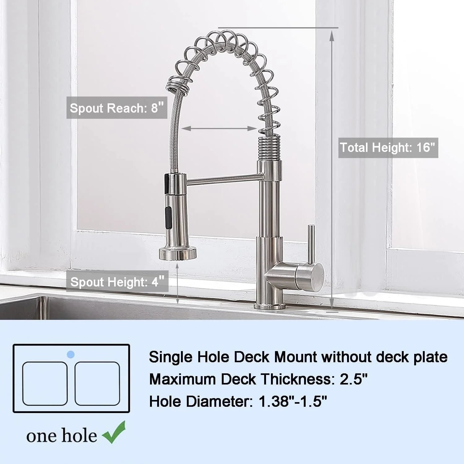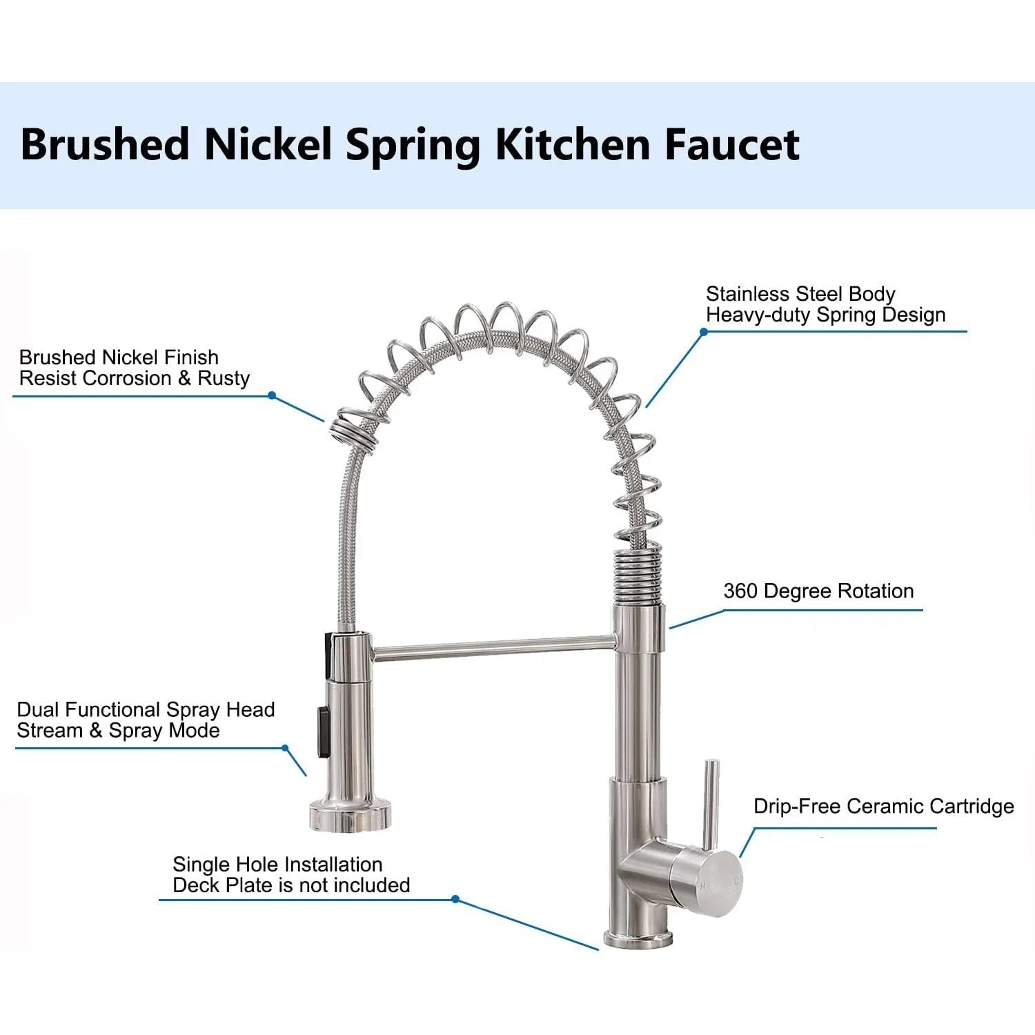 Commercial Brushed Nickel Kitchen Faucet with Pull Down Sprayer Modern Stainless Steel Single Handle Spring Kitchen Faucet