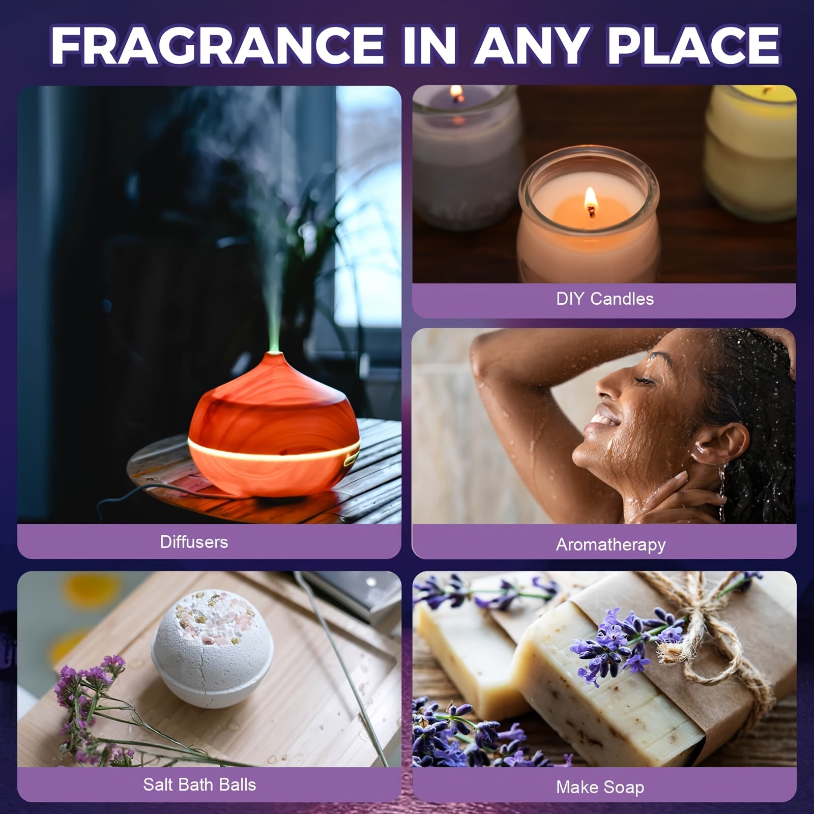 Each bottle contains 0.34oz of high-quality fragrance oil, perfect for use in diffusers, baths, or as a calming aroma in any room. Discover the unique properties of each scent: