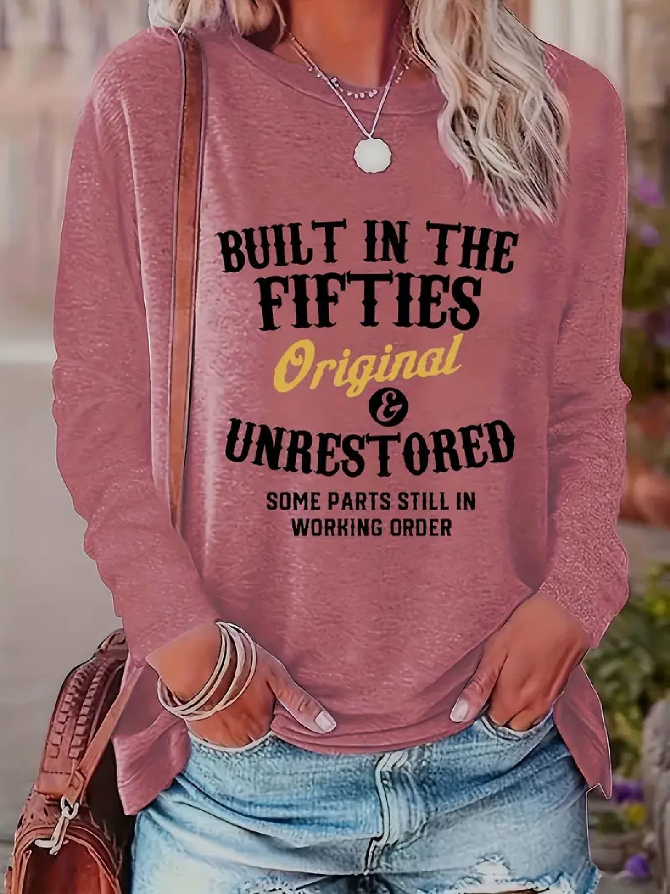 Letter Printed Women'S T-Shirt Fun Print - Comfortable Long Sleeved Round Neck - Perfect Choice for Spring And Autumn Casual Wear
