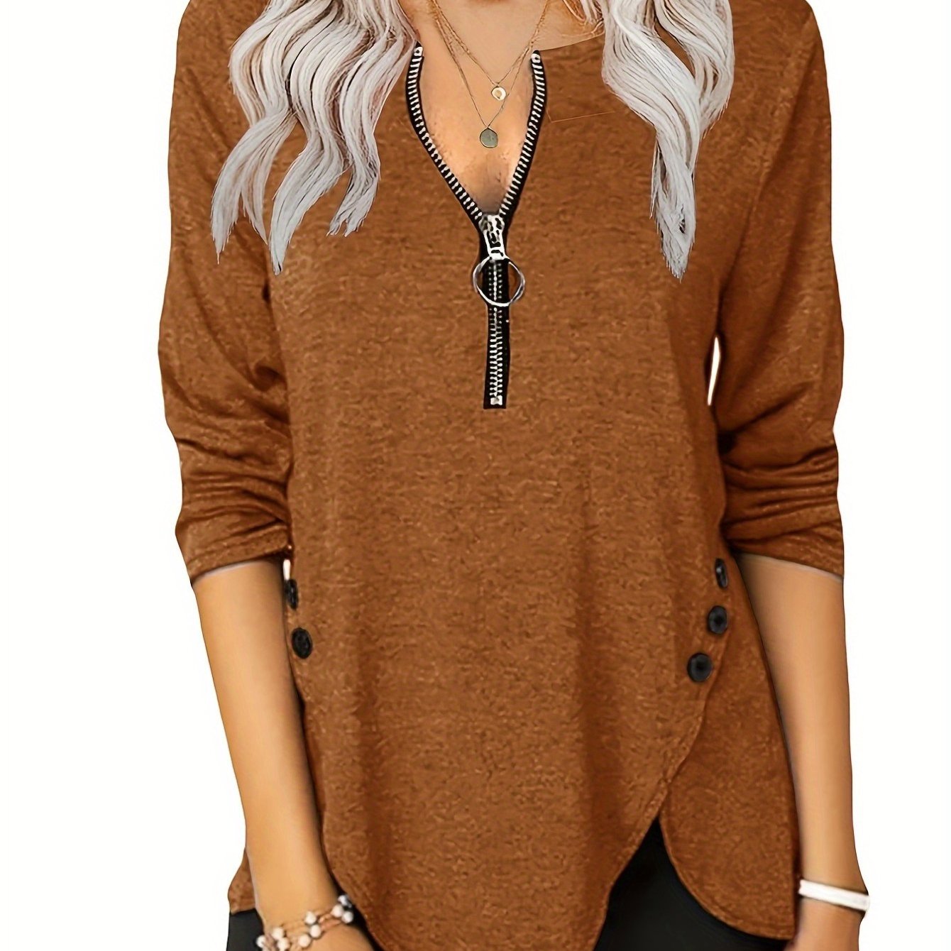 Women's Casual Long Sleeve Tunic Top with Zip Detail