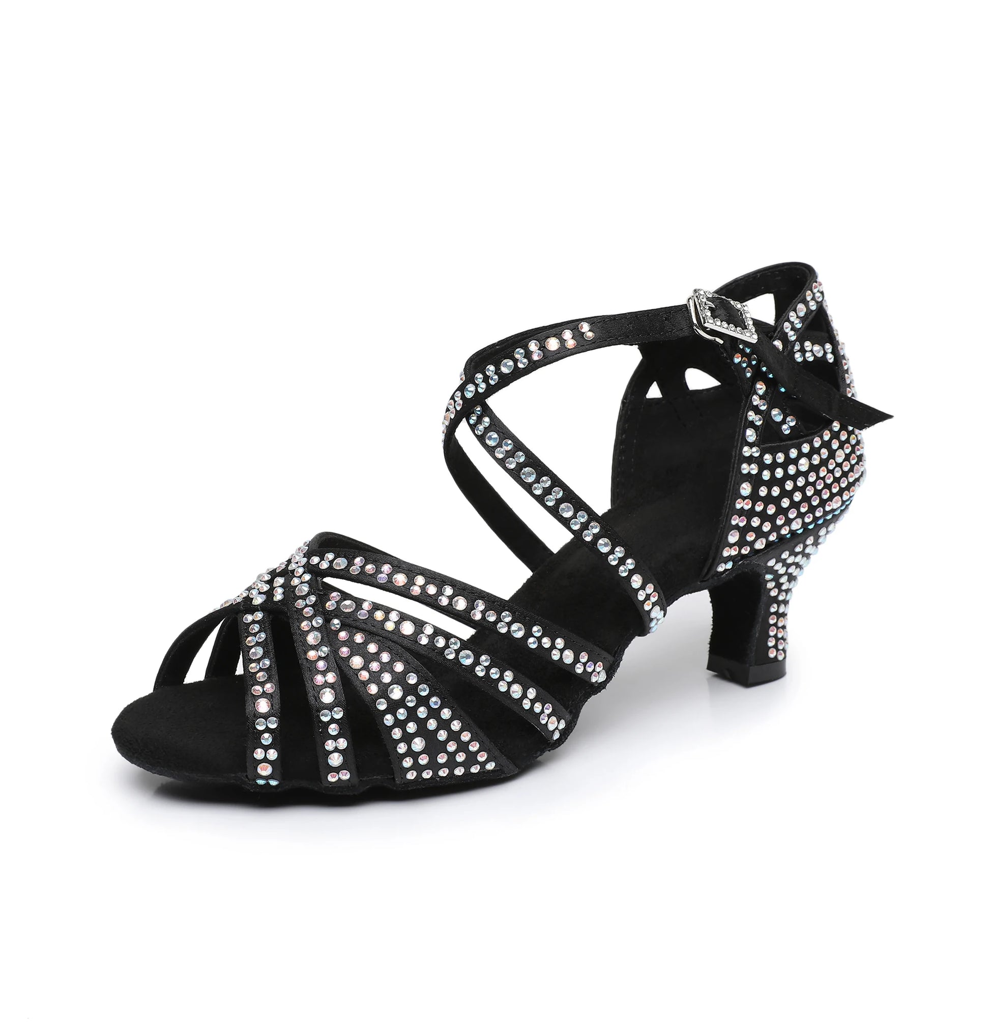Step into elegance and confidence with our Women's Medium Heel Latin Dance Shoes. Designed for the passionate dancer, these stunning shoes are perfect for ballroom, tango, salsa, and even weddings. Made with exquisite silk satin and adorned with dazzling rhinestones, they combine style with functionality.